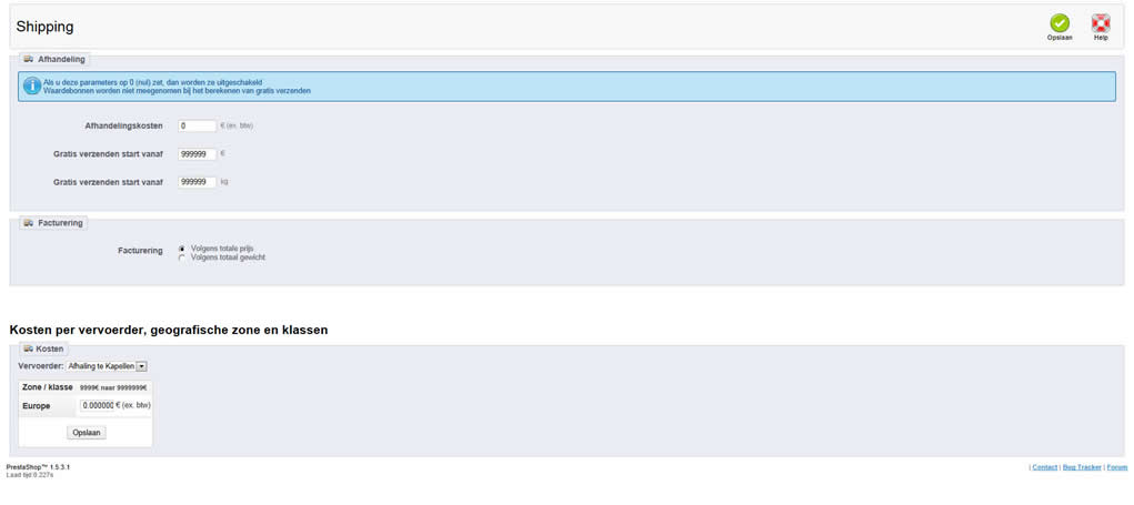 maconl Posted December 21, 2011 Share Posted December 21, 2011 Hoi Patje je kan inderdaad met een bepaald gewicht gratis verzenden invullen je maakt een carrier aan , en vult gewoon als verzendprijs 0 in je moet alleen je gewichten wat anders indelen dus artikelen die gratis zijn lager instellen dan producten waarvoor ze wel moeten betalen er zijn enkele topics hier in het nederlands forum hoe je eea kan instellen ik zal wel een andere marge instellen bv van 0 tm 1 kg - gratis producten 1,01 tm 9,5 kg 9,51 tm 30 kg enz Apply shipping cost: uitgeschakeld maar nu blijf de gratis levering samen met ophalen altijd staan, eea staat niet goed ingesteld bij afwijkend gedrag , deze kan je het beste instellen op vervoerder deactijveren behalve bij het afhalen , deze blijft dan altijd zichtbaar Link to comment Share on other sites More sharing options...