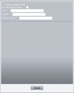 mtra Posted December 28, 2011 Share Posted December 28, 2011 Bonjour, J'ai installé le module giftvoucher Chèque Cadeau v1.0.11, tout est OK dans le BO, mais au niveau FO quand on fait une commande et que le mode choisi dans le BO est: "Le client choisi s'il envoie lui-même ou non le chèque cadeau"; alors il y a une interface voir la photo ci-joint et quand on click sur le bouton "Valider" alors le javascript ne marche pas. Merci Link to comment Share on other sites More sharing options...