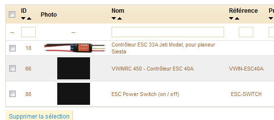 foldi3 Posted December 30, 2011 Share Posted December 30, 2011 (edited) Bonjour à tous. Voila j'ai télécharger il y a quelques temps un module pour changer la couleur d'arrière plan des images. J'ai donc installer le module mis la couleur que je voulais et me suis rendu compte que en blanc original c'était mieux. J'ai donc changer la couleur via ce fameux module mais rien à faire. Maintenant j'ai toujour la couleur de fond que j'ai programmer au départ et il m'est impossible de la changer (désinstallation du module, réinstallation) il n'y a rien à faire. En plus de sa maintenant à chaque nouveau produit que j'ajoute dans mon magasin les petites images du back office ne sont plus que des petits carré gris (de la couleur que j'avais programmer) et il n'y a donc plus de miniature à coté du produit (voir image attachée) J'ai bien entendu contacter prestaspirit pour essayer de corriger le problème mais il m'on dis de supprimer le module et de le réinstaller, depuis plus rien. J'aurais donc besoin de modifier directement les couleurs à la source si ceci est possible mais comment faire ? Merci d'avance pour votre aide. Julien Edited May 20, 2012 by foldi3 (see edit history) Link to comment Share on other sites More sharing options...