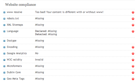 cchhaass Posted January 5, 2012 Share Posted January 5, 2012 Hello, We analyzed our website in the free WOORANK service (www.woorank.com) and we got very bad results. Can some one check or results and give us their opinion? We don't understand why it doens't have access to all this information, some of it is activated in our BO and in our server... Thank you in advance!!!! Link to comment Share on other sites More sharing options...