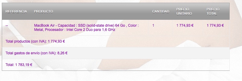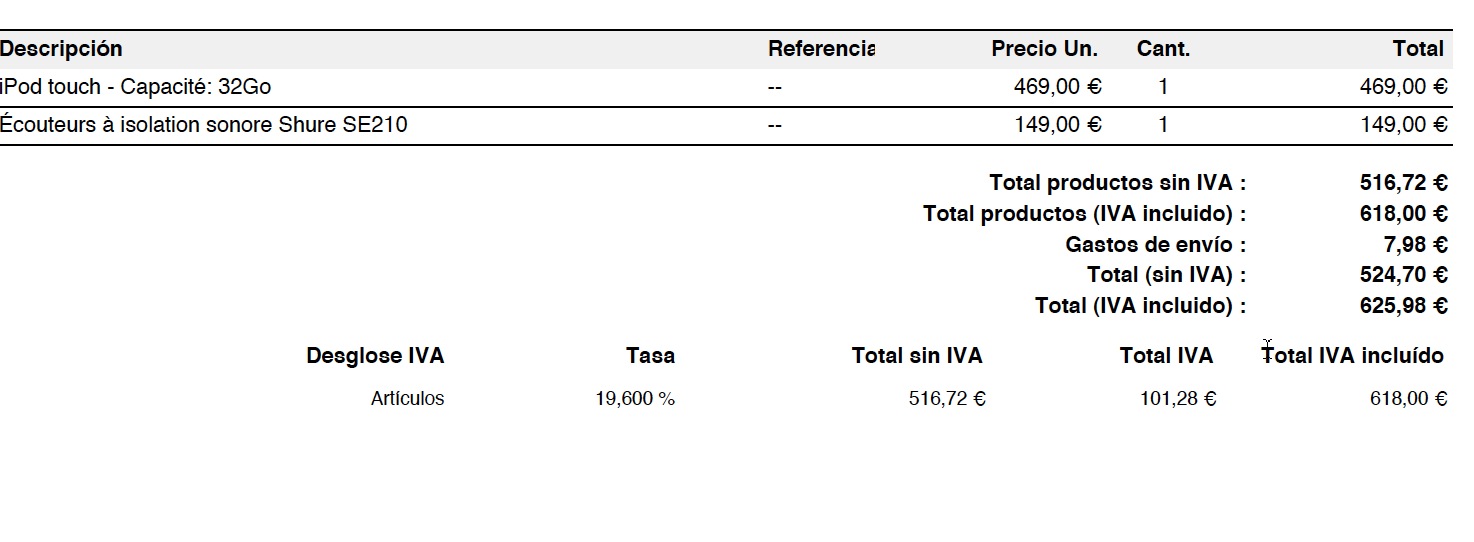 nadie Posted January 7, 2012 Share Posted January 7, 2012 Hola: Me instalé el template PrestaShop Template 1.4.5 y estoy en local. Versión de PrestaShop: 1.4.6.2 Información sobre su servidor: Darwin Darwin Kernel Version 9.8.0 Versión del software servidor: Apache/2.0.64 (Unix) PHP/5.3.5 DAV/2 Versión de PHP: 5.3.5 Versión de MySQL: 5.5.9 He adaptado muchas cosas de diseño a mi gusto pero dentro de mis conicimientos, excasos, en php me topo con varias cosas q desconozco y no encuentro en el foro solución q me valga. en primer lugar el envio de emails cuando se realiza un pedido, hacia el cliente lo hace bien, incluidos los mensajes desde el BO, pero hacia mi, no envia aviso de compra. Los PDF de las factura los genera pero solo con las cantidades y no con los literales, osea las cabeceras. La codificacion es iso-8859-1 os adjunto una captura del pdf, por si os sirve. gracias por todo Para que te avisen a ti de las compras debes activar el modulo llamado "Alertas por correo v2.2 por PrestaShop" Respecto a la factura, has tocado algun fichero, o algun modulo que creas que este afectando al funcionamiento de generar las facturas? 1 Link to comment Share on other sites More sharing options...