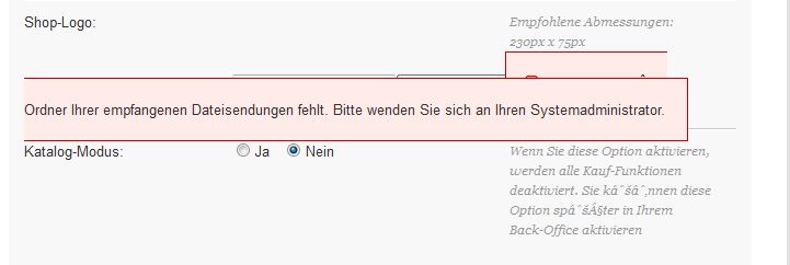 Jaybird Posted January 21, 2012 Author Share Posted January 21, 2012 Habe heute versucht, den Shop neu zu installieren und bekomme schon beim Hochladen des Shop-Logos während der Installation folgende Fehlermeldung: "...Ordner Ihrer empfangenen Dateisendungen fehlt. Bitte wenden Sie sich an Ihren Systemadministrator." Link to comment Share on other sites More sharing options...