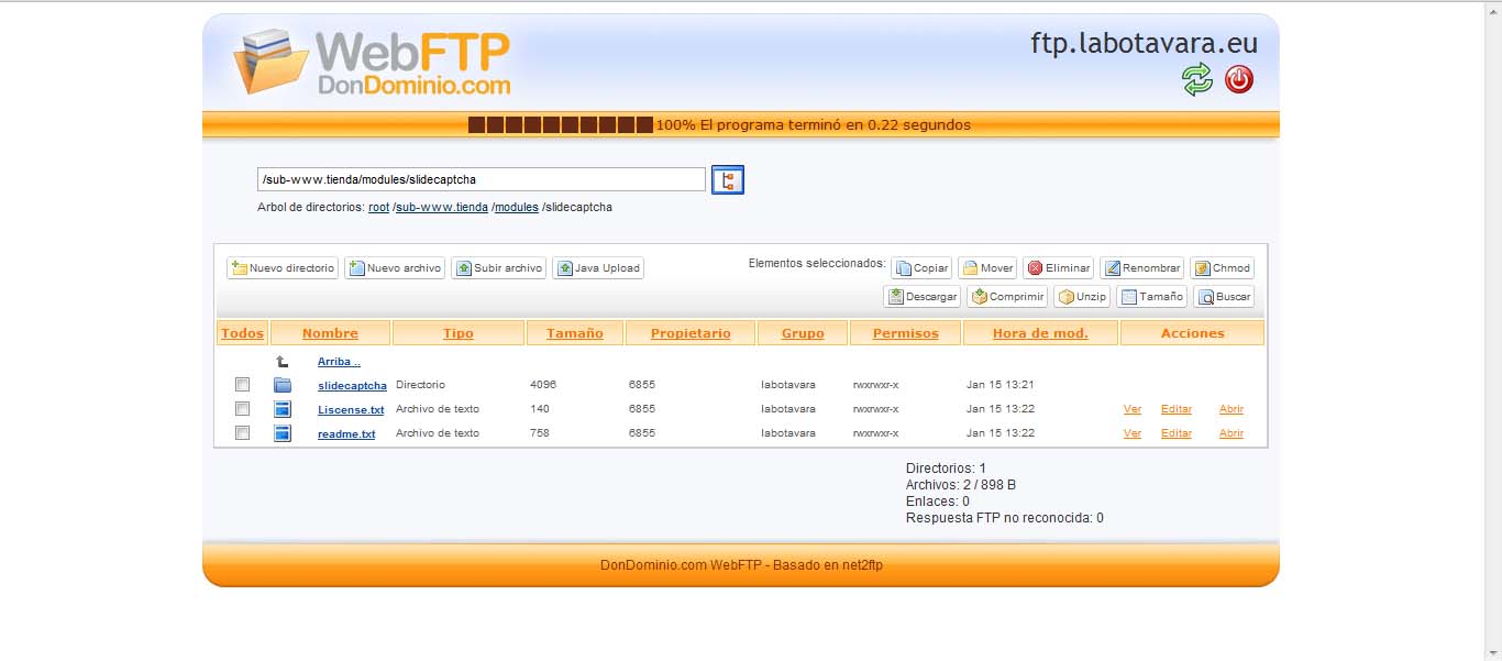 La Botavara Posted January 15, 2012 Author Share Posted January 15, 2012 Pero con que programa estas entrando al ftp ? Prueba conectarte con esta aplicacion: http://filezilla-project.org/ Es Don Dominio, que esta basado en net2ftp Link to comment Share on other sites More sharing options...