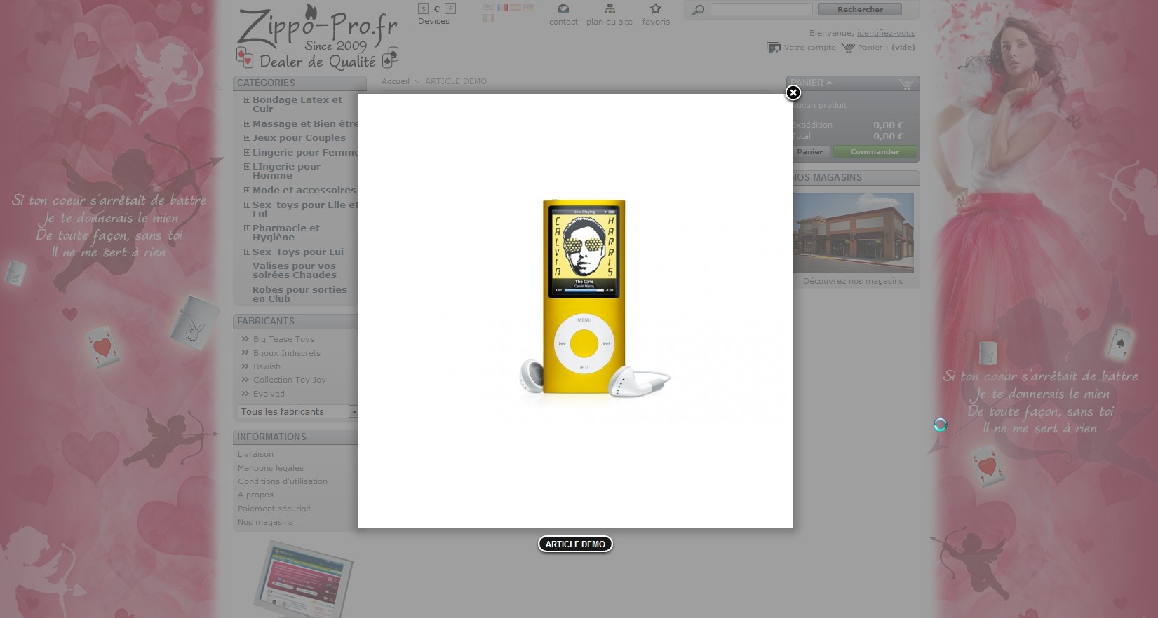 patlac Posted January 18, 2012 Share Posted January 18, 2012 Bonsoir, Je souhaite faire apparaitre une popup (ou équivalent compte tenu d'éventuels blocages) sur la page d'accueil. Principe : Le client se connecte au site, et 2-3 secondes après, une "popup" apparait. Taille et place : Environ 1/6ème d'écran, millieu d'écran. Style : Classique, rectangulaire, mais la page d'accueil devra se voir en "flou", comme lorsque l'on desir voir un objet du site en plein écran ... par exemple (voir pièce jointe). Fichiers supportés : Texte et image (* jpg) Administration : Par le BO, téléchargement d'image et mise à jour texte. Date de livraison : semaine 5 Je dispose d'un site "test" pour vos essais. Merci pour vos propositions et éventuelles questions. Cordialement. Link to comment Share on other sites More sharing options...