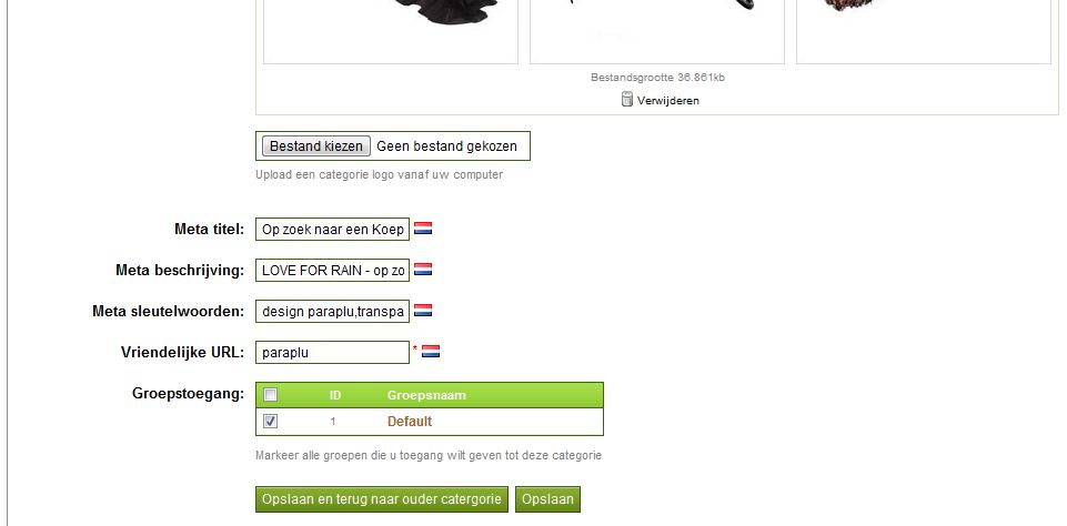 dtgmaze Posted January 22, 2012 Share Posted January 22, 2012 Mijn Title Tag word niet weergegeven in google voor de categorien. zoek ik op paraplu dan krijg ik alleen de categorie naam te zien en daarachter de shopnaam Paraplu - LoveforRain www.loveforrain.nl/28-paraplu Mooie, hippe, trendy paraplu's van alleen zeer hoogwaardige kwaliteit. : koepel paraplu,design paraplu,transparante paraplu,paraplu kant,doorzichtige parapl in mijn backend heb ik wel de title tag ingevuld zie afbeeldingen iedere hulp is welkom natuurlijk! Link to comment Share on other sites More sharing options...
