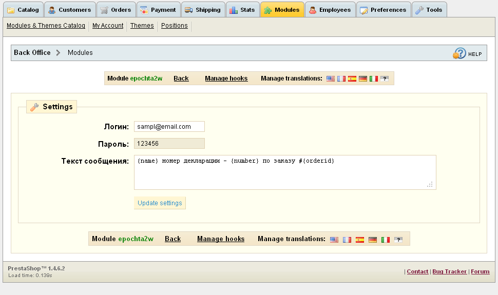silken Posted January 26, 2012 Share Posted January 26, 2012 Модуль для отправки смс уведомления после введения номера посылки в админке. Используется смс шлюз ePochta SMS, цена смс 0,45 руб. по России. Скачать модуль можно здесь http://www.epochtasms.ru/api/ Подробные инструкци со скриншотами http://www.epochtasms.ru/api/prestashop-sms.php 1 Link to comment Share on other sites More sharing options...