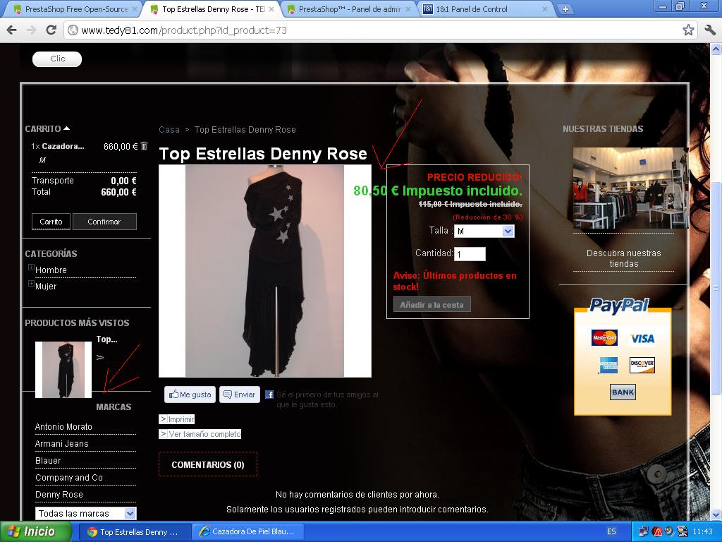 chemici1989 Posted January 26, 2012 Share Posted January 26, 2012 Hola buenas a todos/as compre hace poco un tema y me esta dando algunos errores que con vuestra ayuda estoy solucionando. Aqui me viene otro que me estoy volviendo loca para encontrarlo. El tema es que se me sale el precio del recuadro y ocupa hasta media imagen y no se que seccion del config del tema toquetear para reducirle el tamaño. Adjunto imagen. Un saludo y gracias!!!! Link to comment Share on other sites More sharing options...