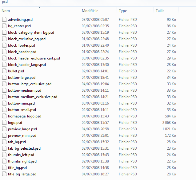 Les fichiers PSD sont simplement les images du thème que vous pouvez ouvrir