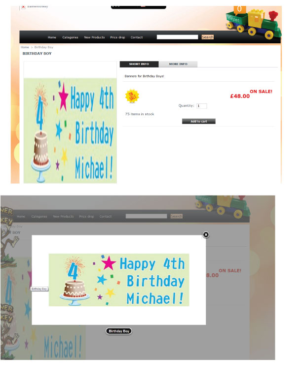 dinazi Posted February 8, 2012 Author Share Posted February 8, 2012 yes! right after i posted this! I thought maybe that post was in the wrong forum.(sorry) Check out www.bannermonkey.com/test and http://www.bannermonkey.com/test/product.php?id_product=14 for and example. Link to comment Share on other sites More sharing options...