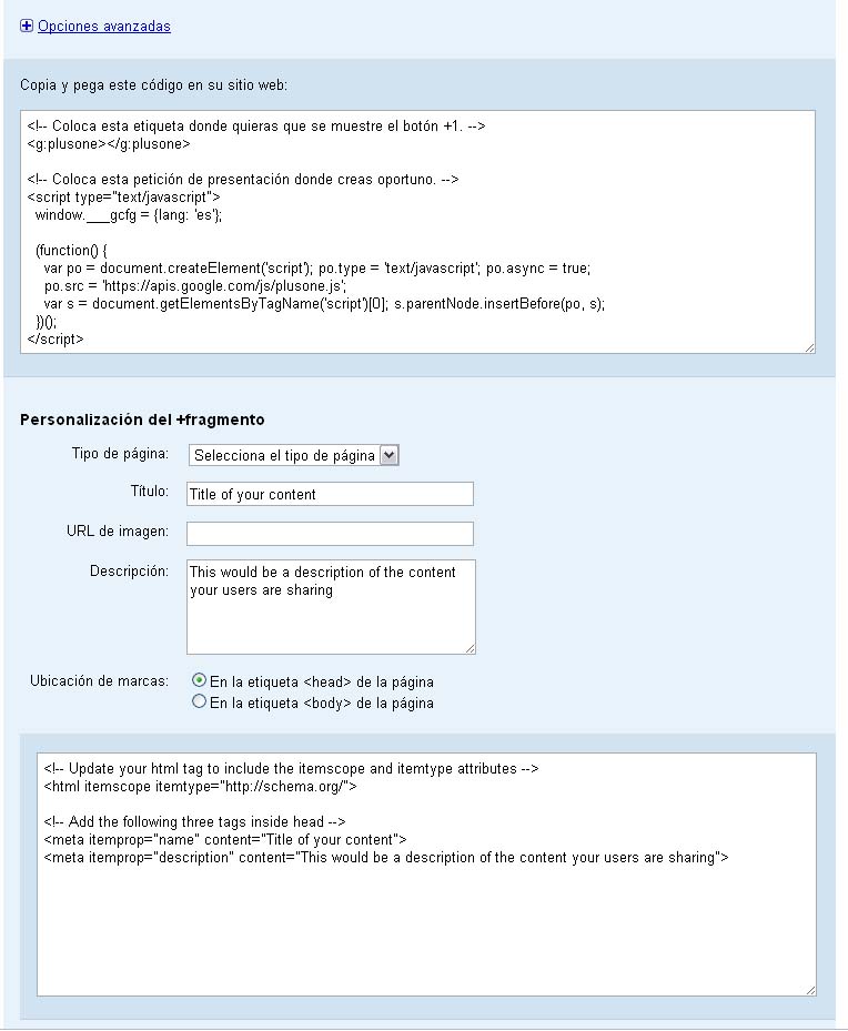 Estoy intentando configurar el +1 de Google y me indica lo siguiente: