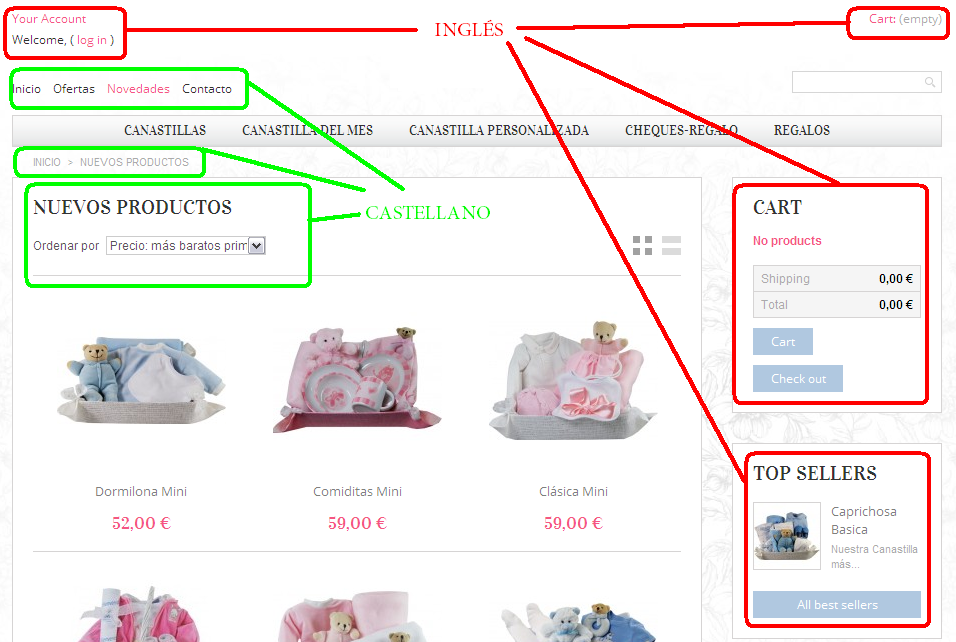 Pero al modificar esas traducciones (que las ha cogido bien), veo en el frontoffice que los modulos de carrito, featured products, bestsellers,...¡solamente me aparecen en inglés! mientras el resto aparece perfectísimament en castellano....