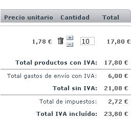 apprentice Posted February 20, 2012 Share Posted February 20, 2012 Hola, Los productos en la cesta se muestran asi: Total productos con IVA: 16,90 € Total gastos de envío con IVA: 6,00 € Total sin IVA: 20,32 € Total de impuestos: 2,58 € Total IVA incluído: 22,90 € El total es correcto, es decir 16,90 + 6 = 22.90 Pero el impuesto calculado es erroneo, el 18% de 16.90 no es 2.58 es 3.042. La tienda esta calculando un IVA de 15.26%. Alguien puede aportar una solucion? Gracias Link to comment Share on other sites More sharing options...