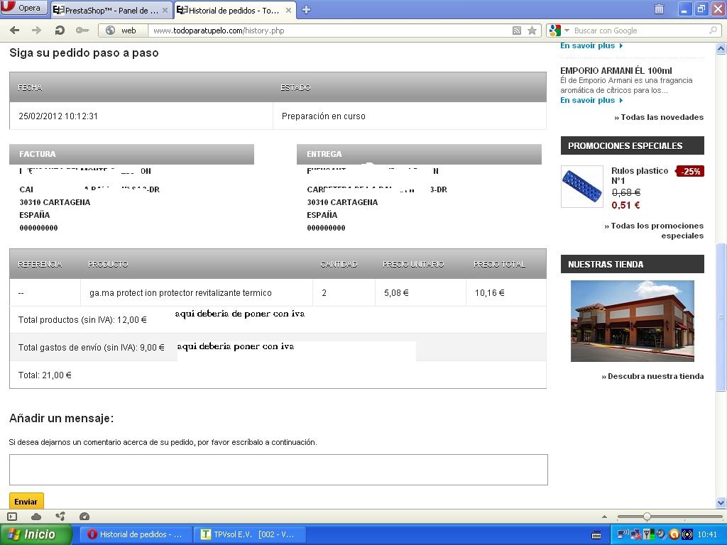 Cuando me hacen un pedido , en mi back office , los detalles del pedido me salen correctos, pero si veis al cliente le sale todo al reves cuando se genera la factura y en el la finalizacion del paso a paso de la compra sale todo mal.