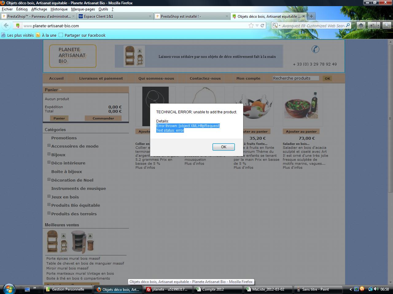 dandav55 Posted March 4, 2012 Share Posted March 4, 2012 Bonjour, Suite à une nouvelle tentative de maj 1.4.3 vers 1.4.7 J'ai en fait de procédure d'install une croix rouge sur les lignes suivantes Ouverture des url externes autorisée L'option PHP " register " global est désactivée Le module editorial est absent et correct en position et activé dans le BO Toujours une technical error lorsque l'on veut mettre un produit dans le panier, donc impossible de passer une commande Je commence à être particulièrement fatigué par tous ces pb techniques qui me prennent un temps fou alors que j'ai d'autres tâches à effectuer pour faire tourner ce site un peu mieux. Si quelqu'un est en mesure de réussir cette maj, je suis preneur Je joins un screen et rebascule vers mon dossier de sauvegarde Bon dimanche et merci pour vos aides 1 Link to comment Share on other sites More sharing options...