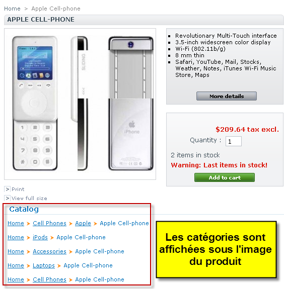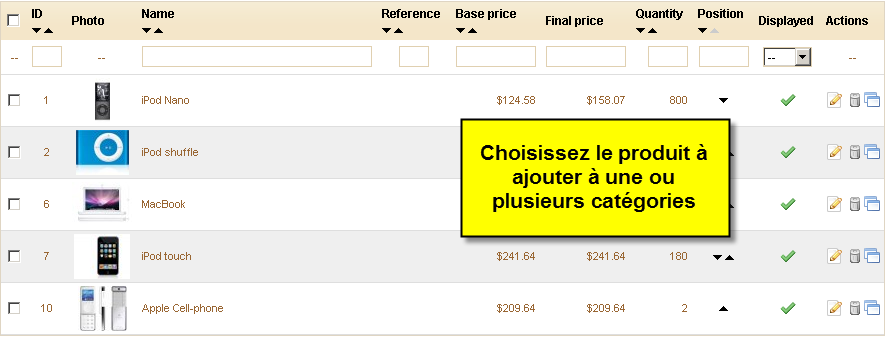 • Attachement des articles aux catalogues auxquels ils appartiennent