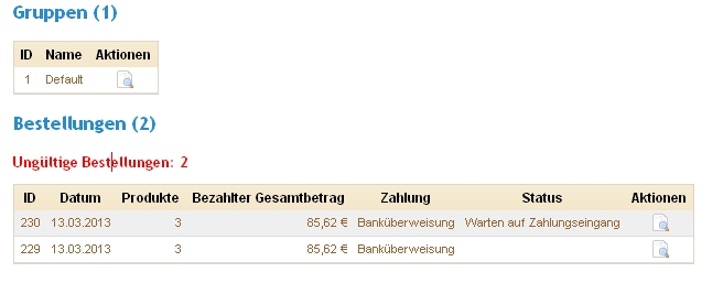 Geht man dann auf den Reiter Kunden-->Kunden wird einem die Bestellung als ungültig angezeigt da die Zahlung noch nicht eingegangen ist. Als nächstes muss man sein Bankkonto überprüfen ob die Zahlung des Kunden eingegangen ist.