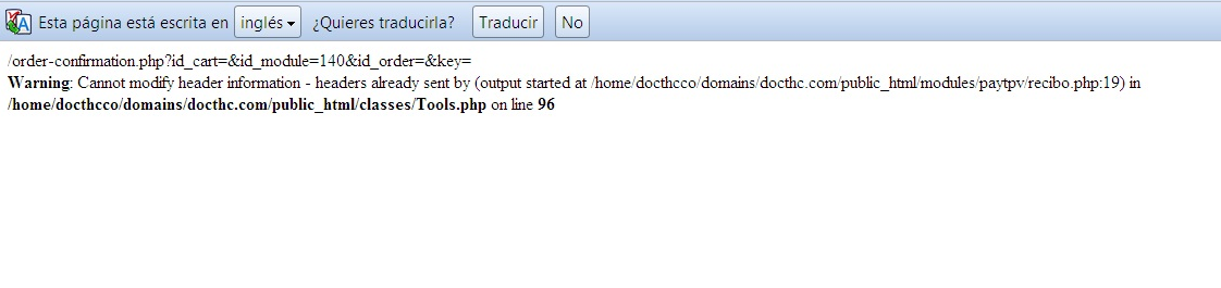 josecebri Posted March 7, 2012 Share Posted March 7, 2012 Buenas tengo un problema de redirección, cuando se cancela el pago de un producto de sale un warning y no me redirecciona a ningun sitio. Le dado muchas vueltas pero mi inesperiencia en php no encuentra la solución: Codigo que me redirecciona (archivo.php de mi modulo de pago): $order = new Order($paytpv->currentOrder); echo __PS_BASE_URI__.'order-confirmation.php?id_cart='.$_REQUEST['r'].'&id_module='.$paytpv->id.'&id_order='.$paytpv->currentOrder.'&key='.$order->secure_key; Codigo de error en la redirección(classes/Tools.php linea 96): header('Location: '.$url); exit; Error original: /order-confirmation.php?id_cart=&id_module=140&id_order=&key= Warning Cannot modify header information - headers already sent by (output started at /home/docthcco/domains/docthc.com/public_html/modules/paytpv/recibo.php:19) in /home/docthcco/domains/docthc.com/public_html/classes/Tools.php Alguien me puede echar una mano?? Muchas gracias Link to comment Share on other sites More sharing options...