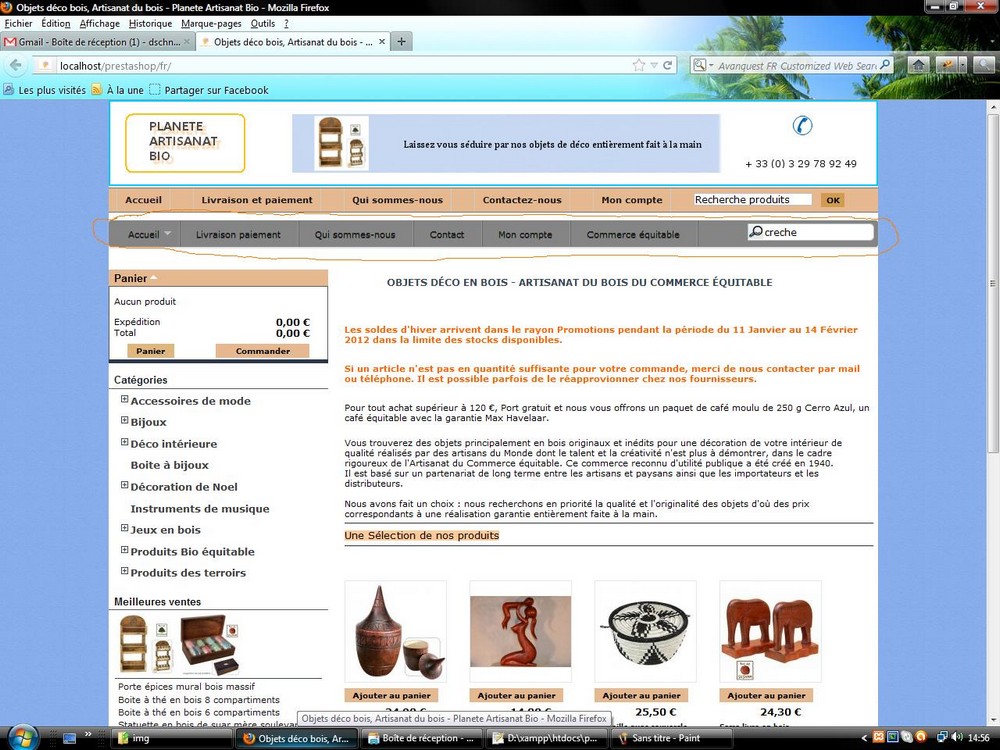dandav55 Posted March 10, 2012 Share Posted March 10, 2012 J'ai fait divers essais mais ne suis pas parvenu à changer la teinte du module blocktopmenu et supprimer la liste déroulante Lorsque l'on clique sur accueil je voudrais que cela redirige réellement vers la page d'accueil et non sur les catégories du site Espèrant que quelqu'un volera à mon secours Je joins un screnn ou en local j'utilise le pm_advancedtop menu en haut qui a planté ma mise à jour, donc je cherche à le remplacer par le block topmenu qui est en dessous Bonne journée et merci pour votre aide Link to comment Share on other sites More sharing options...