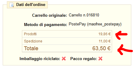 geko2010 Posted August 7, 2013 Share Posted August 7, 2013 Ciao Cleoni. Ho installato il "modulo" sulla versione 1.4.8.3 in modo piuttosto semplice e senza bug visibili. Ho riscontrato però un conflitto con la scontistica attribuita ai vari gruppi. Mi spiego: Se utilizzo solamente lo sconto(che è iva inclusa) o gli altri parametri contenuti nella tabella dettaglio ordine va tutto bene. Se invece modifico il prezzo dell'articolo si creano problemi. Diciamo che il "sistema" calcola sempre e comunque il prezzo di default ed in base a quello fa dei calcoli tutti suoi. In pratica, ti faccio un esempio dettagliato: il cliente che fa l'ordine ha uno sconto del 33%, l'ordine è il seguente: Aprendo la modifica d'ordine mi trovo comunque il prezzo di default di € 15.00 anzichè quello scontato di € 10.01: Ora vado a modificare il prezzo del prodotto, facciamo 9.00€: Sia nel modulo ordine che nel riepilogo carrello si sballa il prezzo del prodotto(come se avessi fatto un ulteriore 33% di sconto) mentre il conto rimane corretto, infatti l'email al cliente arriva corretta. Inoltre ne "i dati dell'ordine" l'unico parametro che si modifica è il totale. La fattura invece riporta tutto il conteggio sbagliato: Per ora cercherò di utilizzare solamente lo sconto ma se hai novità per il resto fammi sapere. Grazie Link to comment Share on other sites More sharing options...