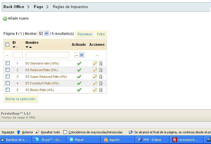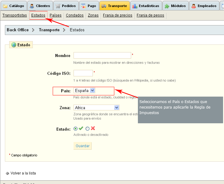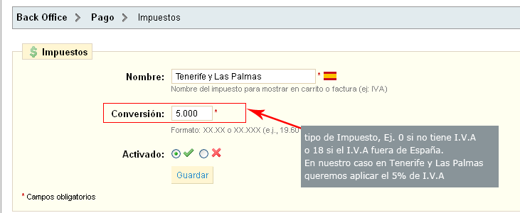 josemi2011 Posted March 14, 2012 Share Posted March 14, 2012 Hola a tod@s, me gustaría explicar el funcionamiento de los Impuestos y las Reglas de Impuestos que aparecieron desde la versión Prestashop 1.4 en adelante. Desde Alea Technology, empresa especializada en el desarrollo de tiendas online con Prestashop nos gustaría poder ir aportando nuestras soluciones y ayudas para que desarrolladores y usuarios puedan entender mejor las funcionalidad y usabilidad de Prestashop. Al principio es un poco complicado de entender y muchos desarrolladores han sufrido para poder comprender la lógica del funcionamiento que Prestashop le da a las reglas de impuestos para los distintos países. ¿Qué son las reglas de impuestos y para que sirven? Es un sistema que se aplica en Prestashop para que la tienda automáticamente aplique en el carrito del cliente el impuesto o I.V.A correspondiente a su país o ciudad. Este impuesto se aplicará dependiendo de la ciudad, provincia o país que el cliente haya configurado en los datos de envío de su panel de configuración personal en Prestashop. ¿Cómo se configura los impuestos y las reglas de impuestos? Para configurar las reglas de impuestos y los impuestos primero deberemos de acceder a nuestro Backoffice en Prestashop. En el Backoffice deberemos de pulsar sobre la pestaña "Pago". Dentro de esta sección, encontraremos un submenú con las opciones siguientes: Divisas | Impuestos | Reglas de Impuestos | Vales de descuentos Nosostros en este post nos centraremos en las opciones "Impuestos" y "Reglas de Impuestos". Captura 1. Menú opciones de Impuestos Impuestos Los impuestos es la opción dónde podremos configurar los distintos tipos de impuestos que se aplicarán en las distintas ciudades, provincias o países de nuestra tienda. Para acceder a los impuestos, haremos click sobre la opción del submenú "Impuestos" mostrada en la primera captura. Captura 2. Opción Impuestos. Dentro de esta sección podremos crear un nuevo tipo de impuesto, borrarlo o bien, editarlo. Si se observa en la captura de arriba, lo primero que hemos hecho es pulsar sobre el botón o enlace "Añadir nuevo" , para poder crear un nuevo tipo de Impuesto que aplicaremos más tarde en nuestras reglas de impuestos. Captura 3. Nuevo Impuesto Como se puede observar en la captura anterior ya hemos escrito para nuestro nuevo impuesto tres campos importantes: - Nombre: Es el nombre que le queremos poner al tipo de impuesto. - Conversión: Este campo es el importante realmente ya que es el valor numérico que le damos al tipo de impuesto. Este valor representa el tanto porciento aplicable a cada producto. No poner el "%" , sólo tienes que poner un valor por ejemplo 18 que significa que se le aplicará el 18% a los productos o bien, 13.6 que será igual a aplicar el 13,6%. -Activado: Debemos de marcar la opción "Activado" para que podamos usar el impuesto creado en las reglas de impuestos Una vez terminado de configurar el nuevo impuesto deberemos de pulsar sobre el botón de "Guardar" para que nuestros cambios queden salvados y actualizados. Si vemos que después tenemos que rectificar o modificar cualquiera de las opciones anteriores no te preocupes, porque podrás editar cualquier tipo de impuesto creado desde la tabla impuestos que aparece en la "Captura 2. Nuevos Impuestos". De la misma manera, crearemos otro tipo de impuesto llamado "Ceuta y Melilla" dónde hemos configurado su campo "Conversión" a 0. Ya que los clientes de Ceuta y Melilla no se les aplicará el I.V.A en los productos de su carrito. Ya tenemos configurado el tema de los impuestos. Ahora tendremos que aplicarlos en los países y/o ciudades, provincias que necesitemos para nuestra tienda. Para ello, deberemos de acceder a la opción del submenú "Reglas de Impuestos". Reglas de Impuestos La opción del submenú "Reglas de Impuestos", nos permitirá aplicar los tipos de impuestos que hemos ya creado y configurado a cada uno de los Países, ciudades,... que queramos. Este punto es el más conflictivo, ya que muchos usuarios y desarrolladores de Prestashop hemos dedicado mucho tiempo en poder comprender bien el funcionamiento y el porqué a algunos de nosotros al principio no nos funcionaba. Voy a exponer posibles errores o casos que hemos detectado: 1) Importante es crear previamente los tipos de impuestos como hemos hecho al principio de este post. 2) Al crear una Regla de impuestos o al editarla se nos mostrará una serie de tabs o opciones con los países/estados que tenemos cargado de Prestashop. Ejemplo: España, Europa, Baleraes, Canarias, Ceuta y Melilla,... Si no tenemos los estados de España tendremos que crearlos: Para crear un estado por ejemplo España tendremos que acceder desde nuestro Backoffice en la pestaña Transporte y pulsar sobre el submenú Estados. Captura 4. Transporte Dentro de la opción Estado pulsamos sobre "Añadir nuevo" y rellenamos las opciones que aparecen en la captura anterior, como por ejemplo (Nombre del país, iso, zona,...) El problema que tienen muchos desarrolladores y usuarios de Prestashop es que muchas veces tienen la necesidad de crear no sólo un país por ejemplo "España", sino que también necesitan crear zonas como "Ceuta y Melilla" y luego crear el estado "Ceuta" que tiene por zona "Ceuta y Melilla" y por país "España". ¿Qué hace Prestashop? En este caso, Prestashop cuando creamos una nueva Regla de Impuestos nos creará un tab con la zona "Ceuta y Melilla" y dentro nos repite todas las provincias españolas incluyendo Ceuta y Melilla. Esto es un problema puesto que cuando expliquemos a continuación como crear o editar una regla de impuesto para una determinada provincia por ejemplo para Ceuta tendremos que poner en todos los tabs dónde aparezca Ceuta como ciudad la misma configuración antes de darle al botón de "Guardar" . No te preocupes porque a continuación veremos este caso y lo explicaremos paso a paso. Crear una Regla de Impuestos Para crear una Reg