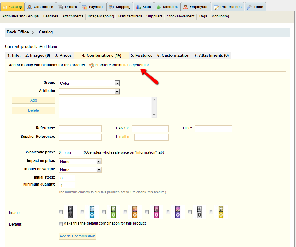 Mike Kranzler Posted March 26, 2012 Share Posted March 26, 2012 Thanks!!! Where do I find the combination generator? When you're editing a product in the Catalog tab, click on option 3: Combinations. There, at the top of the page you should have the option to use the Combinations Generator. I hope this helps. -Mike Link to comment Share on other sites More sharing options...