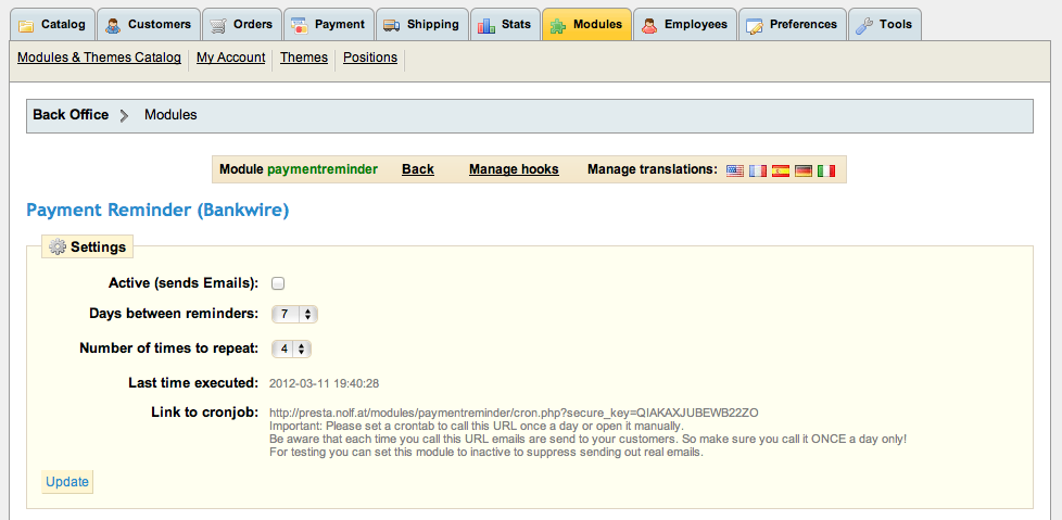 martinhandy Posted July 20, 2014 Share Posted July 20, 2014 We created the addon "Payment Reminder for Bankwire", a module that sends periodic email reminders to customers that chose bankwire as payment method but didn't transfer the money yet. You probably experienced the problem too: many people that chose bankwire don't actually transfer the money and the order stays open forever. That's a pity since you already got your customer to place an actual order, which is the hardest part in the order process! With our new module you now can increase your revenue easily by reminding those latter customers to transfer the money by sending an automatic email reminder. Configuration of the module is very easy: just decide when and how often you want to remind these customers. For example: we remind customers once a week (7 days after the order has been placed) and do this 4 times. So basically a customer who hasn't paid for his order receives a reminder every week for at most a month. Since we enabled this module in our shop, we experience an increase of 60% of bank transfers that are done after 7 days and otherwise would have been lost if we did not remind our customers. We developed this module for our own business and it has been very helpful to us. Less missing payments and no manual work at all. That's why we now put it on addons.prestashop.com: Payment Reminder (Bankwire) A screenshot of the configuration page: en_configuration.png hello, i just bought your product, but there's a problem. the total amount of the payment and the bank information is not showing. as i see the content of the email is not so different with the "awaiting bank transfer" email. i try to change the {amount} with {total_paid} and it's still not showing. this is how it looks in test mail: Dear Mr. aikal saputra, Your order #551 history thank you for your order with id #551. Unfortunately we couldn't ship it yet because we didn't receive the payment. Please note that you have selected to pay by bank wire. Please send your wire to : Order total amount is 0.00Rp You can review this order and download your invoice from the "Order history" section of your account by clicking "My account" on our Website. Gigstore Online powered with PrestaShop™ thanks Link to comment Share on other sites More sharing options...