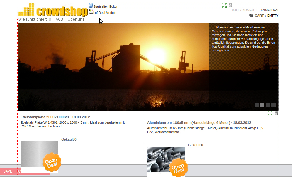 Trademaster Posted March 18, 2012 Share Posted March 18, 2012 Morgen Leute, ich kann keinen CMS-Block horizontal über eine Slideshow auf meiner Startseite anlegen. Ich möchte gerne drei Links unter meinem Logo plazieren (Prinzip wie die Fußleiste). Die Seiten sind alle soweit angelegt. Habe auch schon im Live-Editor alles probiert, keine Chance. Ich kann einfach keinen Block oben einfügen! Bevor ich die Seite vor ein paar Monaten umstrukturiert habe, habe ich es schon einmal so gehabt. Funktionieren tut es definitiv. Mit freundlichen Grüßen Link to comment Share on other sites More sharing options...
