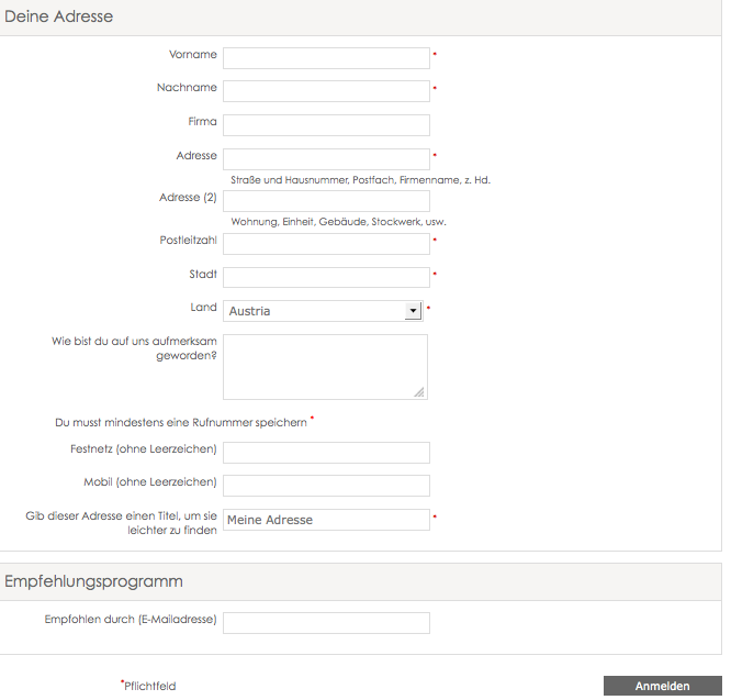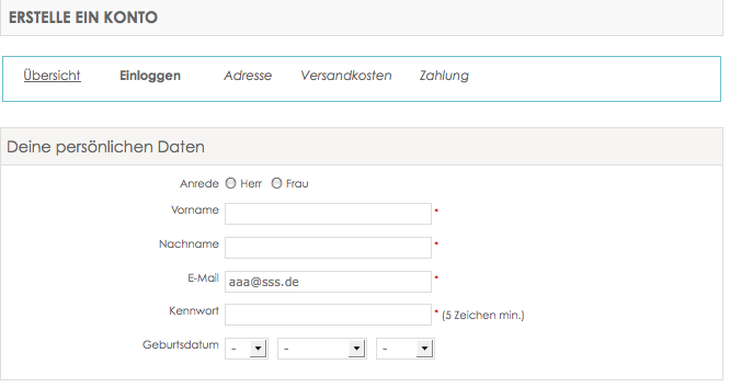 anasia Posted March 22, 2012 Share Posted March 22, 2012 Ich kapiere nicht warum bei der Anmeldung die Newsletteroption nicht ersichltich ist, in der authentication.tpl ist sie doch auch drinnen? Kann mir vielleicht bitte jemand drübeschauen? {* * 2007-2011 PrestaShop * * NOTICE OF LICENSE * * This source file is subject to the Academic Free License (AFL 3.0) * that is bundled with this package in the file LICENSE.txt. * It is also available through the world-wide-web at this URL: * http://opensource.org/licenses/afl-3.0.php * If you did not receive a copy of the license and are unable to * obtain it through the world-wide-web, please send an email * to [email protected] so we can send you a copy immediately. * * DISCLAIMER * * Do not edit or add to this file if you wish to upgrade PrestaShop to newer * versions in the future. If you wish to customize PrestaShop for your * needs please refer to http://www.prestashop.com for more information. * * @author PrestaShop SA <[email protected]> * @copyright 2007-2011 PrestaShop SA * @version Release: $Revision: 9376 $ * @license http://opensource.org/licenses/afl-3.0.php Academic Free License (AFL 3.0) * International Registered Trademark & Property of PrestaShop SA *} {* ** Compatibility code for Prestashop older than 1.4.2 using a recent theme ** Ignore list isn't require here ** $address exist in every PrestaShop version *} {* Will be deleted for 1.5 version and more *} {* Smarty code compatibility v2 *} {* If ordered_adr_fields doesn't exist, it's a PrestaShop older than 1.4.2 *} {if !isset($dlv_all_fields)} {$dlv_all_fields.0 = 'company'} {$dlv_all_fields.1 = 'firstname'} {$dlv_all_fields.2 = 'lastname'} {$dlv_all_fields.3 = 'address1'} {$dlv_all_fields.4 = 'address2'} {$dlv_all_fields.5 = 'postcode'} {$dlv_all_fields.6 = 'city'} {$dlv_all_fields.7 = 'country'} {$dlv_all_fields.8 = 'state'} {/if} {capture name=path}{l s='Login'}{/capture} {include file="$tpl_dir./breadcrumb.tpl"} <script type="text/javascript"> // <![CDATA[ idSelectedCountry = {if isset($smarty.post.id_state)}{$smarty.post.id_state|intval}{else}false{/if}; countries = new Array(); countriesNeedIDNumber = new Array(); countriesNeedZipCode = new Array(); {if isset($countries)} {foreach from=$countries item='country'} {if isset($country.states) && $country.contains_states} countries[{$country.id_country|intval}] = new Array(); {foreach from=$country.states item='state' name='states'} countries[{$country.id_country|intval}].push({ldelim}'id' : '{$state.id_state}', 'name' : '{$state.name|escape:'htmlall':'UTF-8'}'{rdelim}); {/foreach} {/if} {if $country.need_identification_number} countriesNeedIDNumber.push({$country.id_country|intval}); {/if} {if isset($country.need_zip_code)} countriesNeedZipCode[{$country.id_country|intval}] = {$country.need_zip_code}; {/if} {/foreach} {/if} $(function(){ldelim} $('.id_state option[value={if isset($smarty.post.id_state)}{$smarty.post.id_state}{else}{if isset($address)}{$address->id_state|escape:'htmlall':'UTF-8'}{/if}{/if}]').attr('selected', 'selected'); {rdelim}); //]]> {if $vat_management} {literal} $(document).ready(function() { $('#company').blur(function(){ vat_number(); }); vat_number(); function vat_number() { if ($('#company').val() != '') $('#vat_number').show(); else $('#vat_number').hide(); } }); {/literal} {/if} </script> <h1>{if !isset($email_create)}{l s='Log in'}{else}{l s='Create your account'}{/if}</h1> {assign var='current_step' value='login'} {include file="$tpl_dir./order-steps.tpl"} {include file="$tpl_dir./errors.tpl"} {assign var='stateExist' value=false} {if !isset($email_create)} <form action="{$link->getPageLink('authentication.php', true)}" method="post" id="create-account_form" class="std"> <fieldset> <h3>{l s='Create your account'}</h3> <h4>{l s='Enter your e-mail address to create an account'}.</h4> <p class="text"> <label for="email_create">{l s='E-mail address'}</label> <span><input type="text" id="email_create" name="email_create" value="{if isset($smarty.post.email_create)}{$smarty.post.email_create|escape:'htmlall':'UTF-8'|stripslashes}{/if}" class="account_input" /></span> </p> <p class="submit"> {if isset($back)}<input type="hidden" class="hidden" name="back" value="{$back|escape:'htmlall':'UTF-8'}" />{/if} <input type="submit" id="SubmitCreate" name="SubmitCreate" class="button_large" value="{l s='Create your account'}" /> <input type="hidden" class="hidden" name="SubmitCreate" value="{l s='Create your account'}" /> </p> </fieldset> </form> <form action="{$link->getPageLink('authentication.php', true)}" method="post" id="login_form" class="std"> <fieldset> <h3>{l s='Already registered ?'}</h3> <p class="text"> <label for="email">{l s='E-mail address'}</label> <span><input type="text" id="email" name="email" value="{if isset($smarty.post.email)}{$smarty.post.email|escape:'htmlall':'UTF-8'|stripslashes}{/if}" class="account_input" /></span> </p> <p class="text"> <label for="passwd">{l s='Password'}</label> <span><input type="password" id="passwd" name="passwd" value="{if isset($smarty.post.passwd)}{$smarty.post.passwd|escape:'htmlall':'UTF-8'|stripslashes}{/if}" class="account_input" /></span> </p> <p class="submit"> {if isset($back)}<input type="hidden" class="hidden" name="back" value="{$back|escape:'htmlall':'UTF-8'}" />{/if} <input type="submit" id="SubmitLogin" name="SubmitLogin" class="button" value="{l s='Log in'}" /> </p> <p class="lost_password"><a href="{$link->getPageLink('password.php')}">{l s='Forgot your password?'}</a></p> </fieldset> </form> {if isset($inOrderProcess) && $inOrderProcess && $PS_GUEST_CHECKOUT_ENABLED} <form action="{$link->getPageLink('authentication.php', true)}?back={$back}" method="post" id="new_account_form" class="std"> <fieldset> <h3>{l s='Instant Checkout'}</h3> <div id="opc_account_form" style="display: block; "> <!-- Account --> <p class="required text"> <label for="guest_email">{l s='E-mail address'}</label> <input type="text" class="text" id="guest_email" name="g