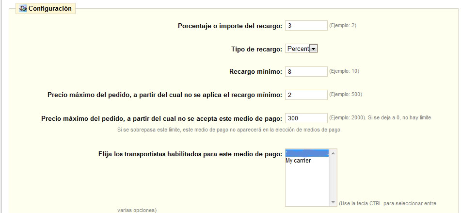 JUAN ANTONIO CF Posted July 31, 2013 Share Posted July 31, 2013 Buenas tardes, Nadie. v. 1.5.3.1 Estoy contemplando la posibilidad de incorporar el pago contra reembolso, pero tengo una duda o necesidad. Para una provincia no se cobrará recargo y para el resto de España peninsular si. El modulo que tengo por defecto es "Pago contra reembolso V 0.4" y no se si contempla la posibilidad de incluir recargo por zonas, ya que cuando lo instalo no aparace la opción "configure". Puedes ayudarme en esto. Gracias como siempre. Saludos. Link to comment Share on other sites More sharing options...