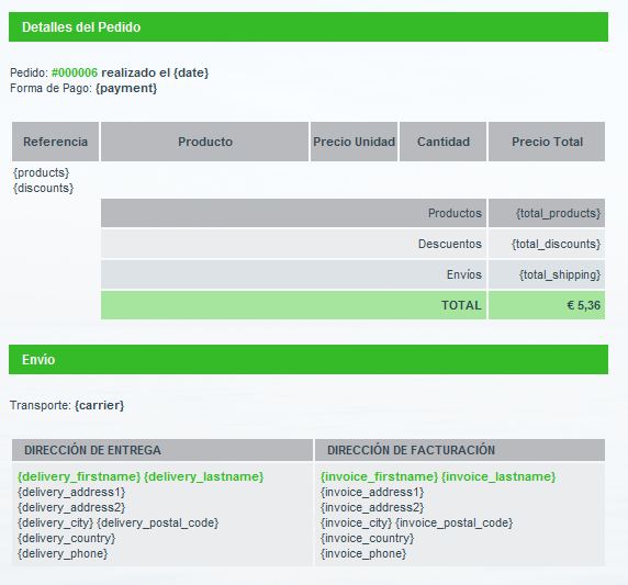pinwi Posted March 27, 2012 Share Posted March 27, 2012 Hola! Llevo días dando vueltas a google sin parar, he leído tanto posts de este foro, como entradas en la forge y otras webs que aparecían en los resultados pero no he dado con solución a este problema. No sé si es una tontería o un fallo que me ocurre a mi solo, no quería entrar aquí sin estar seguro de haber probado todo para no molestar. Resulta que en el estado "Pago aceptado" le llega al cliente la plantilla "order_conf", pero en ella solo se reemplazan las variables de "nombre, apellido, nombre de la tienda, el numero de pedido y el total pagado", quedando el resto como se ve en la imagen... sin reemplazar. He revisado varios archivos pero no doy con la solución. Si a alguien le ha pasado o tiene idea de por dónde puede estar el problema le agradecería la ayuda. He conseguido resolver los problemas que he encontrado pero este no hay manera. Gracias. Un saludo. Link to comment Share on other sites More sharing options...