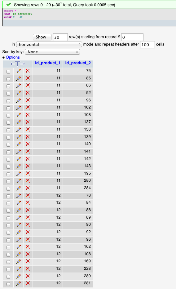Paul_gpvr Posted March 27, 2012 Author Share Posted March 27, 2012 Its ok i managed to figure out the sql to do this. Where 11 is the product id you want to copy accessories from and 30 is the product id you want to copy them to. insert into `ps_accessory`(`id_product_1`,`id_product_2`) select '30' as `id_product_1`, `id_product_2` from `ps_accessory` where `id_product_1`='11' Link to comment Share on other sites More sharing options...