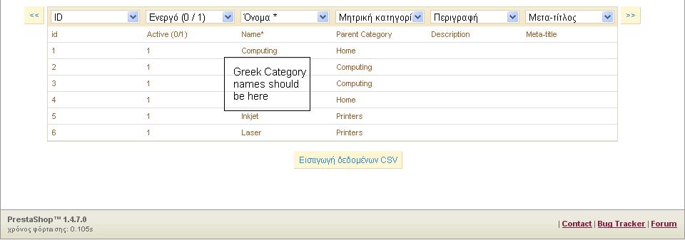 ACSS001 Posted March 29, 2012 Share Posted March 29, 2012 Good morning, I have just installed PrestaShop™ 1.4.7.0 and trying to import categories and products via csv import functionality. I have imported more of the Greeks via Add / Update a language and fill in much in translation tables, so that Front (almost 90%) and Back (about 64%) end is most in Greek. My xls file has Greek and English words. I saved it as csv, open it in Notepad and save it again with UTF-8, just to be sure everything is more than OK. I upload it via FTP on admin/import folder, then I go to CSV import, choose Greek as file's locale, hit next, on the table I saw only english words, no Greek ones. Is there something I do wrong? Any help would be appreciated. Thank you in advance. Link to comment Share on other sites More sharing options...