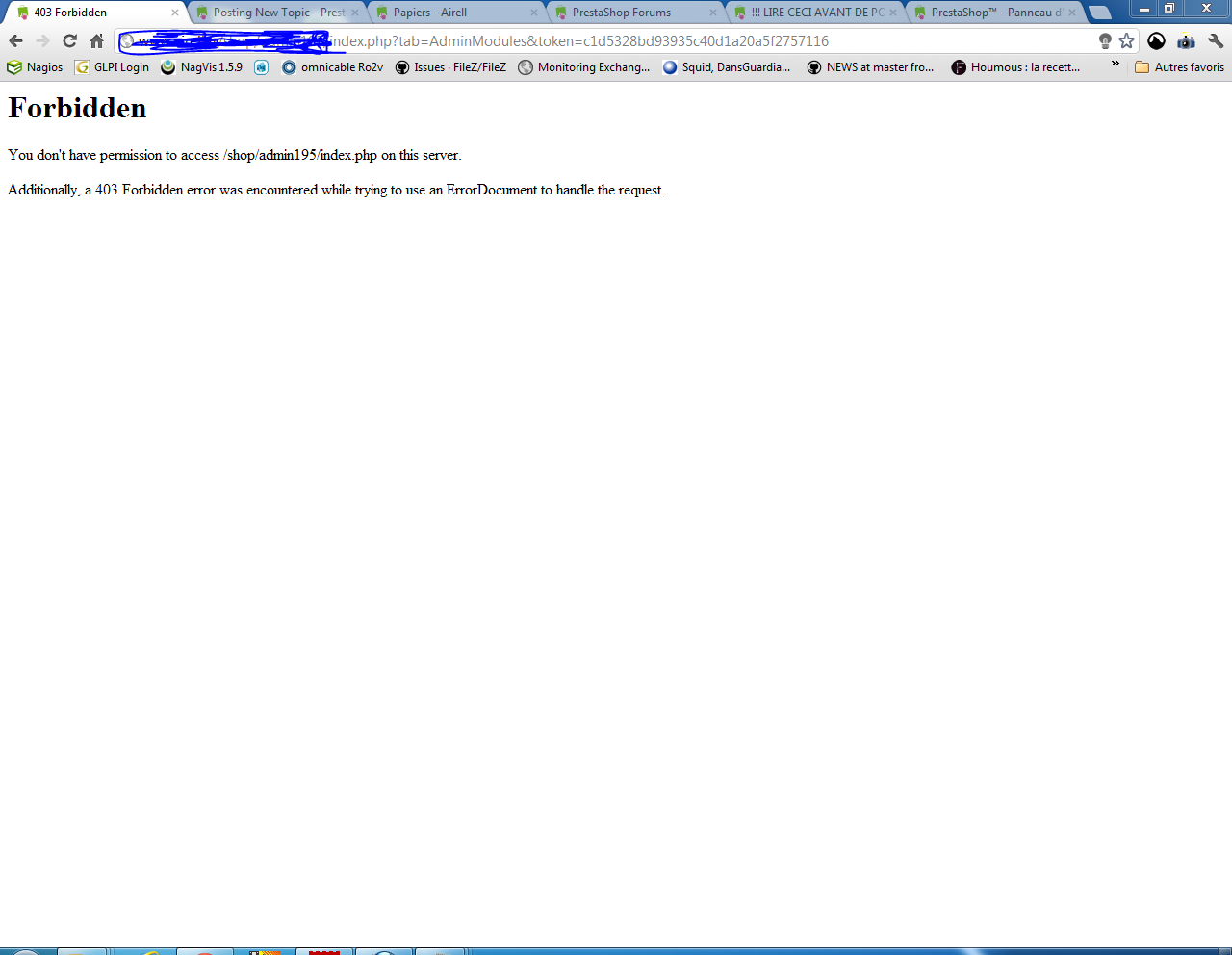 romnvll Posted April 4, 2012 Share Posted April 4, 2012 Bonjour, Je viens vers vous car je suis découragé! j'ai mis a jour prestashop vers 1.4.6 vers 1.4.7.2. je me connecte à l'interface admin : OK Onglet CATAGLOGUE : OK Onglet Client : OK Onglet Commande : OK Onglet Paimement : OK Onglet Transport : OK Onglet Stats : OK Onglet Module : Erreur 403 je ne trouve pas pourquoi, et niveau log ... c'est pauvre. Alors est ce que c'est un bug, ou le problème se situe peut être entre mon clavier et ma chaise ?? Link to comment Share on other sites More sharing options...