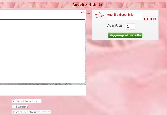 Mistcpanda Posted April 11, 2012 Author Share Posted April 11, 2012 Ti ringrazio moltissimo, ti chi chiedo ancora un po di aiuto perchè ora mi succedono due cose strane. 1) Con quantita in stock positiva sulla scheda mi appare scritto "6 articoli non disponibili" 2) Con quantità in stock negative (prenotati): "Attenzione: Ultimi articoli in magazzino!" a parte che non si vede la quantità, non ho abilitato tale funzione. Che devo fare? Link to comment Share on other sites More sharing options...