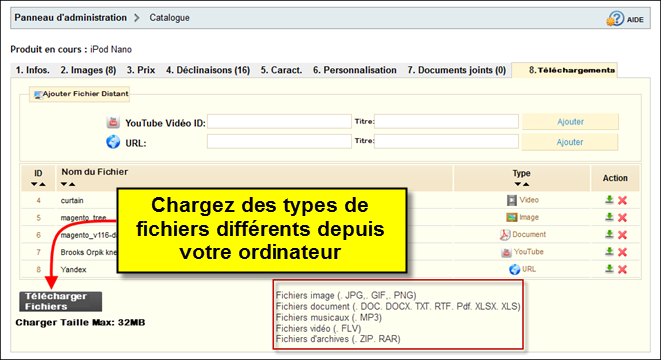 Offrez à vos clients des informations supplémentaires sur des produits tels que les listes de prix ou guides de l’utilisateur et partager des vidéos YouTube, montrant les avantages principaux des produits pour donner aux clients une dernière raison à faire un achat. Le module Prestashop Pièces Jointes aux Produits permet d'ajouter différents types de fichiers texte, audio et vidéo à vos articles.
