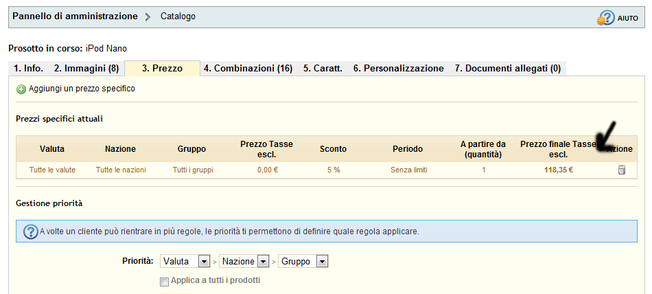 joint77 Posted May 5, 2012 Share Posted May 5, 2012 Ciao, da quanto ho capito, tutte le informazioni sul edit/delete le trovo nei file della cartella admin-->tab. Sapreste indicarmi il file che devo modificare per "rendere editabile un prezzo specifico"? Allego foto. Grazie in anticipo Link to comment Share on other sites More sharing options...