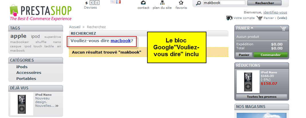Valérie Assetskaya Posted May 14, 2012 Share Posted May 14, 2012 Faites votre recherche plus flexible et conviviale avec Prestashop Autocorrection de Recherche! Avec ce module installé, les clients des magasins recevront l’orthographe suggérée s’ils tapent leurs requêtes de recherche de manière incorrecte. Le module permet aux clients de trouver ce qu'ils recherchent facilement et rapidement. Caractéristiques principales: • Améliore la recherche du Prestashop par défaut • « Vouliez-vous dire » bloc par Google • Installation facile À propos de la compagnie BelVG: BelVG LLC est une société de E-commerce qui applique ses efforts aux grands et petits projets de E-commerce (10 000 visiteurs par jour). Nos centres d’intérêt principaux sont le marketing social, l'intégration mobile et les modules complexes. Nous gardons un œil sur le progrès de l’E-commerce, le développement des Meilleurs modules sociaux et Thèmes Mobiles. Nous avons acquis de l'expérience considérable en travaillant avec la plate-forme Prestashop. L’équipe de BelVG parle couramment l'anglais, le français et l'allemand. Contactez-nous sur [email protected] et nous serons heureux de vous aider à améliorer votre business. Link to comment Share on other sites More sharing options...
