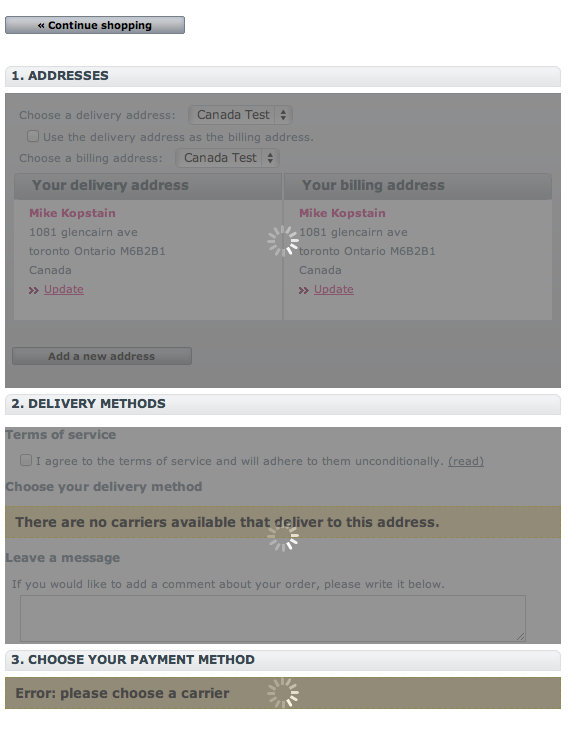 WBSMike Posted May 15, 2012 Share Posted May 15, 2012 Hey all. We just went live with our site and I'm having an issue with one page checkout freezing. As I type this it's been frozen for about 3 minutes. This is what it does: This will happen if you change the address and the site will just freeze like this. Am I missing something obvious? Link to comment Share on other sites More sharing options...
