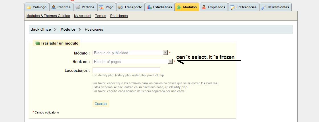 acastrolorenzo Posted May 16, 2012 Share Posted May 16, 2012 Hi all, I´m trying to move the advertising module to the left column, but the hook selector seems to be frozen. I´ve looked for the problem in the forum and tried changing cache and other options, but stills frozen. There´s an image attached with the problem. Any idea?. Link to comment Share on other sites More sharing options...