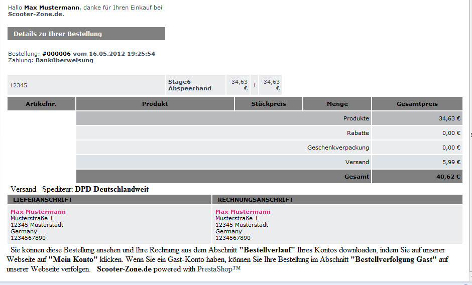 Scooter-Zone Posted May 16, 2012 Share Posted May 16, 2012 (edited) Hallo zusammen eventuell wurde das Thema schon bearbeitet aber ich habe leider nichts hier bisher gefunden.... Ich habe da ein Problem mit meinen Mails die an den Kunden geschickt werden wenn der Kunde Bestellt hat bzw ich einen Bestimmten Status in der Bestellung angebe. Im Anhang habe ich mal zwei Bilder für Euch -Fail2 hier habe ich das Problem das die Artikelnr., die Produktbeschreibung und die Preise anstatt in der Tabelle, darüber stehen. (Dies ist die Mail die der Kunde direkt nach seiner Bestellung erhält.) -Fail3 hier fehlen gänzlich alle angaben... (Hier handelt es sich um die Benachrichtigung bei dem Status Selbstabholung) Woran liegt das? Wie löse ich das Problem? Wäre echt nice wenn mir da jemand bei Helfen kann. Danke im vorraus, schönen Gruß Patrick Edited May 16, 2012 by Scooter-Zone (see edit history) Link to comment Share on other sites More sharing options...