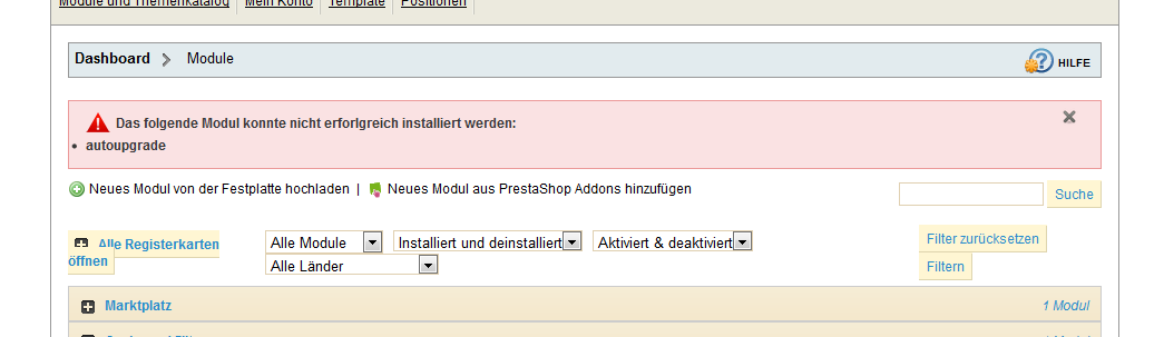 guest* Posted May 17, 2012 Share Posted May 17, 2012 Hat dein Ordner /modules am FTP überhaupt Schreibrechte, wie hier beschrieben ? In welcher Prestashopversion versuchst du das Modul zu installieren ? Verwendest du einen Fork wie Prestashop GC, dann kannst du das Modul nicht verwenden und auch kein Upgrade auf eine Original Prestashopversion machen. Link to comment Share on other sites More sharing options...