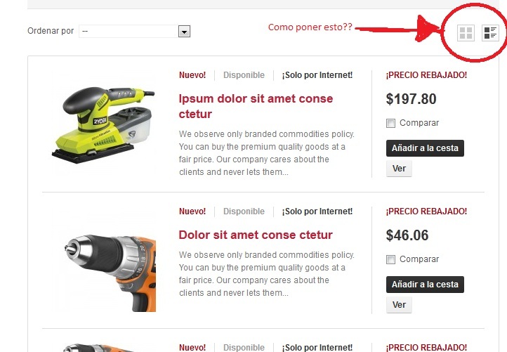 nadie Posted May 20, 2012 Share Posted May 20, 2012 Buenas, esto aparece que en teoria esta en la plantilla, pero no lo encuentro, como se activa, o si es un modulo, como se pone?? Echa un vistazo a este tema: http://www.prestashop.com/forums/topic/141303-free-prestashop-module-products-in-categories-as-list-or-grid-using-jquery/ 1 Link to comment Share on other sites More sharing options...