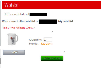 SuperCharlie Posted October 10, 2012 Author Share Posted October 10, 2012 Ok.. its later. 1.4.8.2 I log in, I add some stuff to my wish list, I send someone the link.. they clicky the link.. and the add to cart is disabled. As attached. The ho ho ho season is coming and I really need to get this going. Any help is appreciated..or even bread crumbs to where it is failing.. Thanks, SC Link to comment Share on other sites More sharing options...