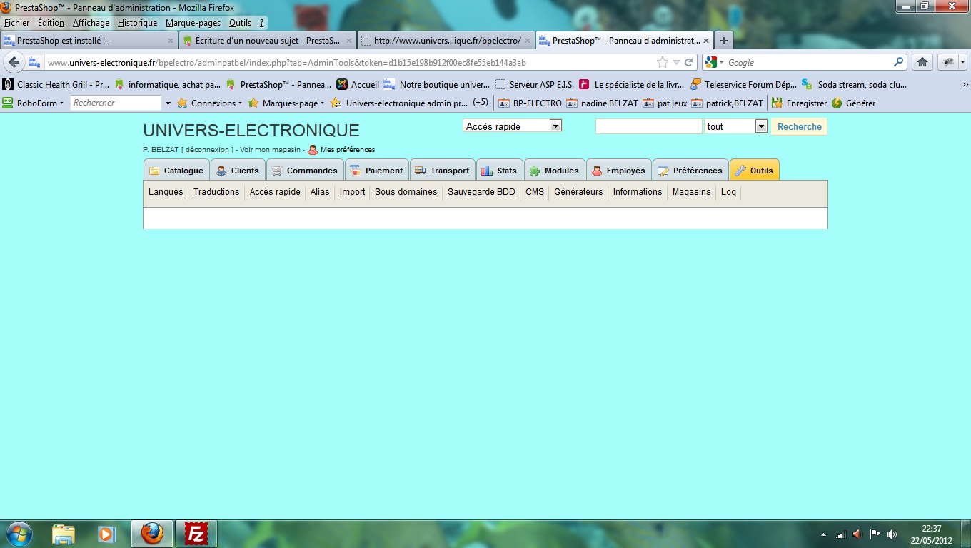 bpelectro Posted May 22, 2012 Author Share Posted May 22, 2012 sur le back office voici l'erreur Fatal error: Class 'FrontController' not found in /homepages/29/d308688603/htdocs/bpelectro/controllers/IndexController.php on line 28 partie admin voici l'erreur egalement Fatal error: Class 'AdminTab' not found in /homepages/29/d308688603/htdocs/bpelectro/adminpatbel/tabs/AdminTools.php on line 28 Link to comment Share on other sites More sharing options...