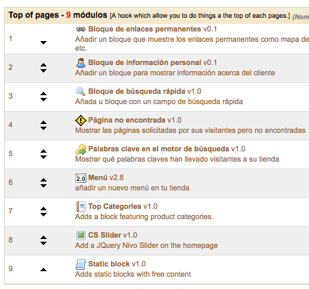 josegemar Posted May 23, 2012 Share Posted May 23, 2012 (edited) He cambiado mi menu de navegacion original por "jbx menu" y al instalarlo todo funciona perfectamente, pero en el front-office veo cosas un poco extrañas. Al echar un vistazo al html veo cosas como esta: El menu (<div class="sf-contener">) está fuera de "header_right" cuando esto no deberia ser así. Al editar mi "header.tpl", veo que está asi: <div id="header_right"> {$HOOK_TOP} </div> Lo curioso es que también mi slider (<div class="slider-wrapper theme-default">) aparece dentro de mi menu "sf-contener". Este es el orden que tengo establecido de mis módulos: ¿Alguien podria echarme una mano y decirme por qué está pasando esto? Edited May 24, 2012 by josegemar (see edit history) Link to comment Share on other sites More sharing options...