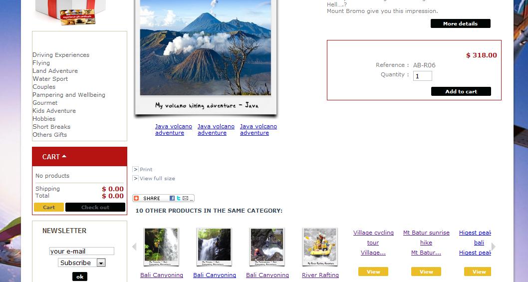 skyrider Posted May 24, 2012 Share Posted May 24, 2012 (edited) Hi I have some issue with images the thickbox images won't show up. previously I add product and images and I ve got no problem at all everything showed perfectly here is the link http://www.iadventur...p?id_product=11 Few days after I add new product and new images but the images wont show at additional images (located under cover product image) and on the row related product http://www.iadventur...p?id_product=17 Will be appreciated if someone can assist me on this. Edited May 25, 2012 by skyrider (see edit history) Link to comment Share on other sites More sharing options...