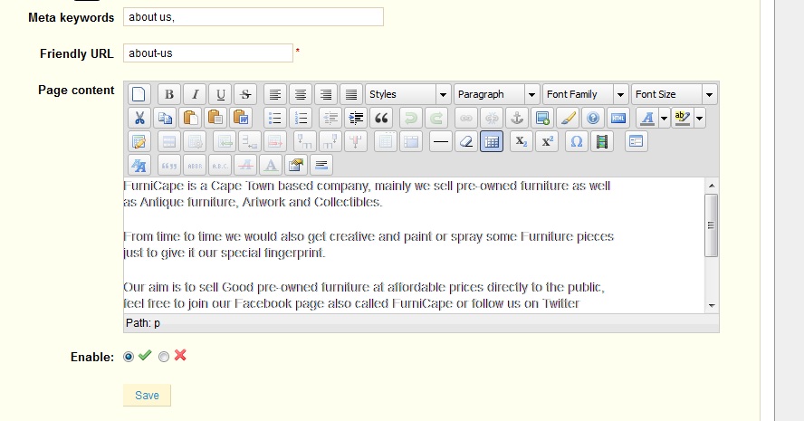 juanv Posted May 25, 2012 Author Share Posted May 25, 2012 Can you give us the URL? I'll take a look at it if you can. Marty Shue Sure, just let me know when your done so that i can close it again..... Let me know if there's anything else!!! Thank you! www.furnicape.co.za Link to comment Share on other sites More sharing options...