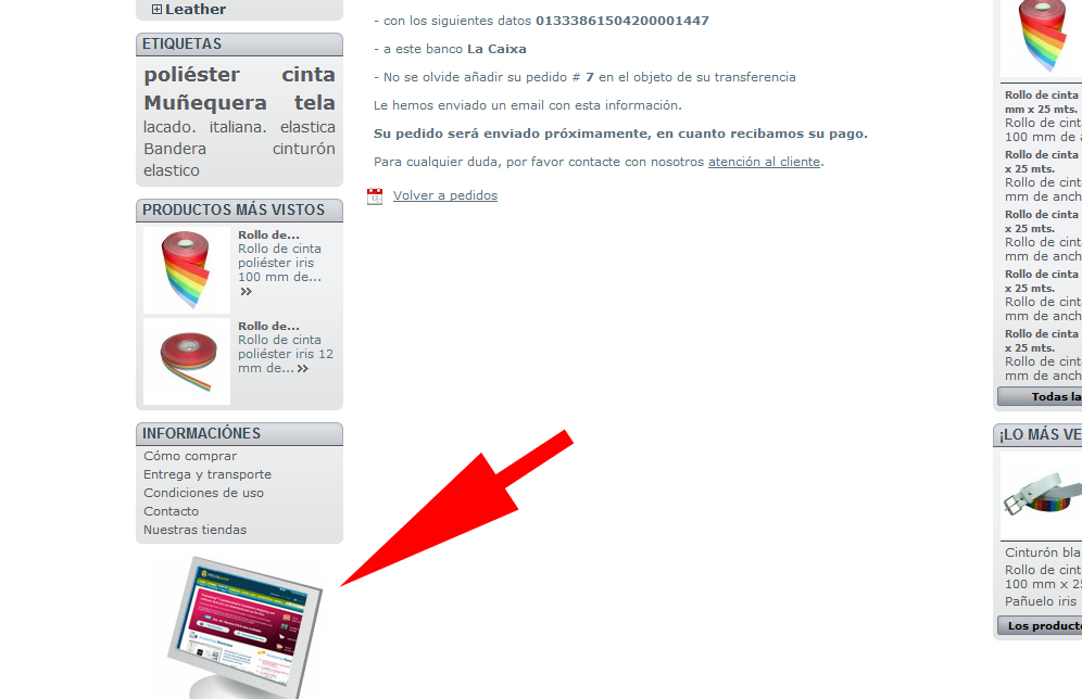 joshua007 Posted May 26, 2012 Share Posted May 26, 2012 Hola. En la tienda aparece el monitor de un ordenador en la parte inferior izquierda como se ve en la img, Como puedo quitarlo? Y otra cosa, en el panel del cliente en mis pedidos aparece un error de sin iva dentro del resumen del pedido. Como puedo corregir este error? Muchas gracias. Link to comment Share on other sites More sharing options...