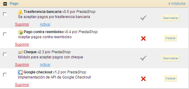 jotaele Posted June 4, 2012 Share Posted June 4, 2012 (edited) Hola a todos, a ver si podeis echarme un cable... tengo la versión 1.4.7.0 y no me aparece el módulo de Paypal (los otros sí). Estas son las cosas que ya he realizado pero que no han tenido ningún resultado: - Actualización del módulo Paypal (http://addons.presta...748-paypal.html). Me da el siguiente error: Fatal error: Cannot make static method ModuleCore::display() non static in class PayPal in /var/www/vhost/diegomarin.net/home/html/prestashop/modules/paypal/paypal.php on line 1362 - Actualización del módulo Paypal de la versión 1.4.6.2 - Actualización del módulo Paypal disponible en el mensaje de los foros: http://www.prestasho...-modulo-paypal/ Saludos. --------- La solución era mucho más sencilla: el buscador de módulos se había quedado con el filtro guardado de "Módulos nativos" y por eso no mostraba el de Paypal Edited June 5, 2012 by jotaele (see edit history) Link to comment Share on other sites More sharing options...