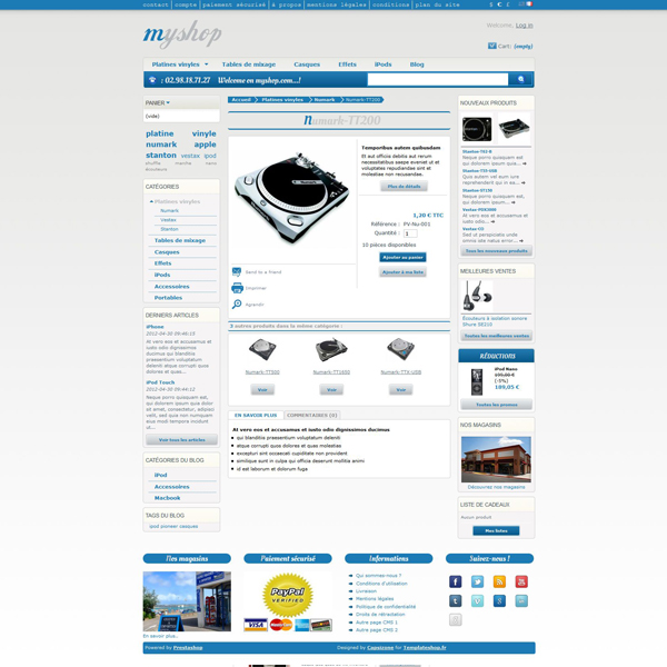 capsizone Posted June 4, 2012 Share Posted June 4, 2012 Bonjour, Voici le nouveau thème que nous avons développé. Décliné en 2 colonnes pour la page d'accueil et 3 colonnes pour les autres pages ce thème au x couleurs dominantes blanc, gris et bleu s'adaptera aisément à différents types de produits. Quelques modules additionnels comme les modules "blocktopmenu" (menu horizontal par Julien Breux) et "plblog" (un blog intégrer dans Prestashop par Prestalive) ajouteront des fonctionnalités à votre e-boutique. Demo Le thème AK Link to comment Share on other sites More sharing options...